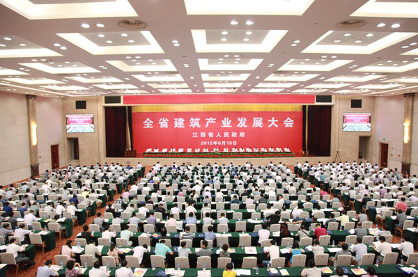 6月15日上午,江西省政府在南昌召開全省建筑產(chǎn)業(yè)發(fā)展大會,省政府朱虹副省長、蔡玉峰副秘書長,住房城鄉(xiāng)建設(shè)部總工程師陳重,建設(shè)廳領(lǐng)導(dǎo)張勇等出席了會議。省直有關(guān)單位負(fù)責(zé)人,各設(shè)區(qū)市、縣(市、區(qū))政府分管領(lǐng)導(dǎo)和建設(shè)局(建委)主要負(fù)責(zé)人,全省特、一級建筑企業(yè)和受表彰建筑企業(yè),部分勘察設(shè)計單位、監(jiān)理單位負(fù)責(zé)人近600人參加會議。