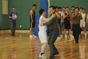 座談會結束后,大家乘車前往恒大體育館,活動的第一項內容是公司領導和青年員工共同完成的團隊拓展游戲——“齊腳并進”和“心心相印”兩項接力比賽。比賽過程中,公司領導和青年員工們熱情高漲,目標明確,心往一處想,勁往一處使,充分發(fā)揮團隊協(xié)作精神,爭分奪秒完成各項任務,布滿汗水的笑臉在燈光下熠熠生輝,加油鼓勁和歡呼祝賀聲響成一片。拓展游戲項目結束,大家還進行了籃球友誼賽和羽毛球比賽。