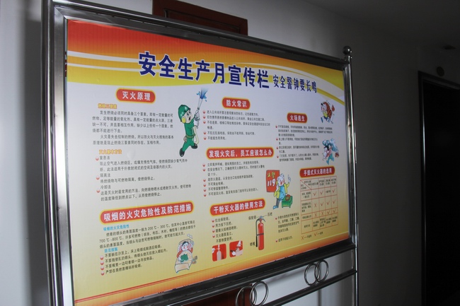 公司總部在辦公樓懸掛“關(guān)注安全,平安是福”、“強(qiáng)化安全基礎(chǔ),推動(dòng)安全發(fā)展”橫幅,并在辦公樓內(nèi)每層擺放2個(gè)安全宣傳牌。