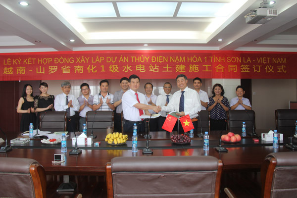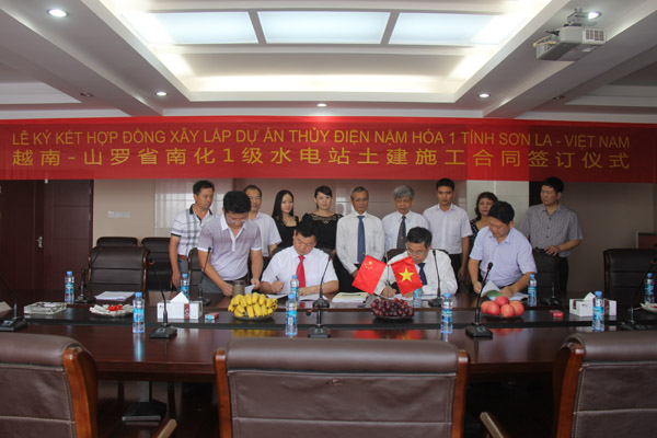 2013年7月22日,越南山羅省南化一級水電樞紐項(xiàng)目建設(shè)合同簽字儀式在我公司南昌市總部順利舉行,越南ANPHA水電投資股份公司董事長阮平陽和我公司董事長王元旦分別代表雙方簽署合同。出席簽約儀式的還有越南建設(shè)與機(jī)電股份公司(MECO)董事長阮玉平、ANPHA水電投資股份公司總經(jīng)理陳重朵,我公司副總經(jīng)理張周平、副總工程師鄒春明、項(xiàng)目經(jīng)理夏愛民等。