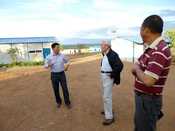 2013年10月5日,中國駐埃塞俄比亞大使解曉巖、經(jīng)贊處參贊錢兆剛等一行赴我公司埃塞KURAZ灌溉項目視察指導工作。我公司副總經(jīng)理聶玉和率項目組及駐埃辦事處工作人員熱情接待了解曉巖大使一行,并匯報了我公司在埃塞發(fā)展及KURAZ項目建設進展情況。