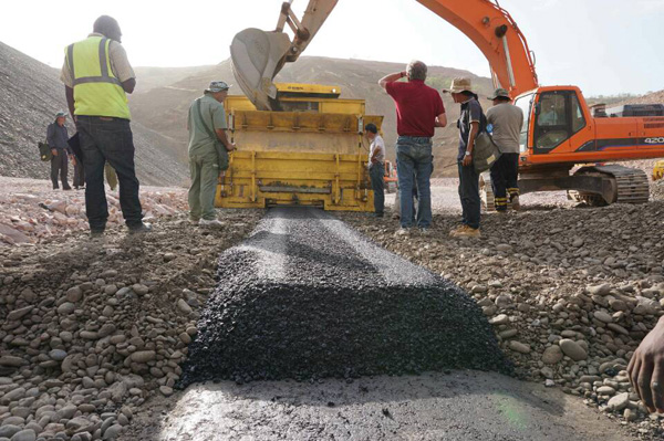 埃塞俄比亞旱季熾熱的風撲打著人們的面龐,也映襯了瀝青混凝土芯墻現(xiàn)場火熱的施工場景。自從2015年3月6日簽訂合同以來,Wolkite瀝青混凝土項目施工緊鑼密鼓,在進行了大量實驗和前期準備的基礎(chǔ)上,取得了實質(zhì)性進展,截止5月15日已完成從804m高程至816m高程的填筑,余下工作正有序進行。
