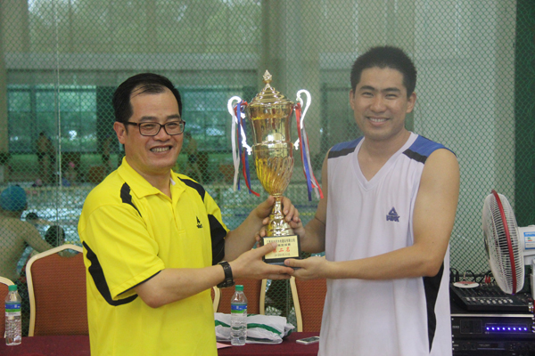 董事長(zhǎng)王元旦(獎(jiǎng)杯右)為冠軍頒發(fā)獎(jiǎng)杯