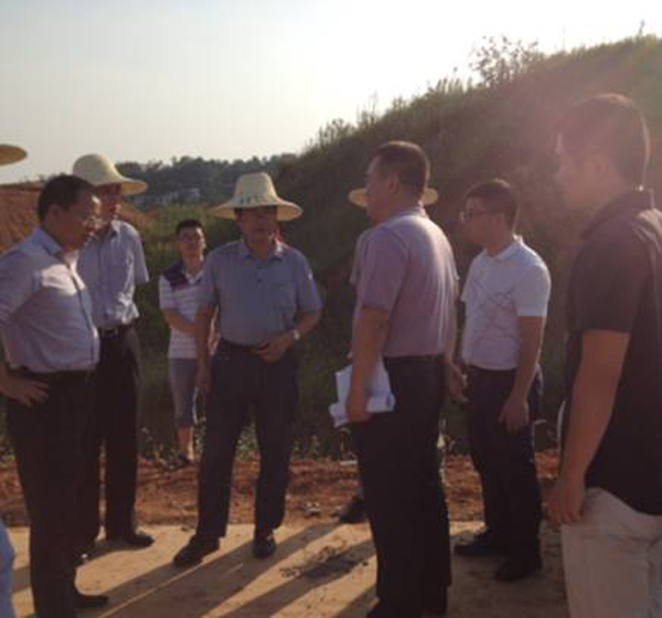 2015年07月13日下午,江西省水利廳副廳長廖瑞釗、五河辦黃國金等領(lǐng)導(dǎo)一行來到我公司承建的江西省五河治理贛州市城市防洪工程社背堤現(xiàn)場視察指導(dǎo)工作。
