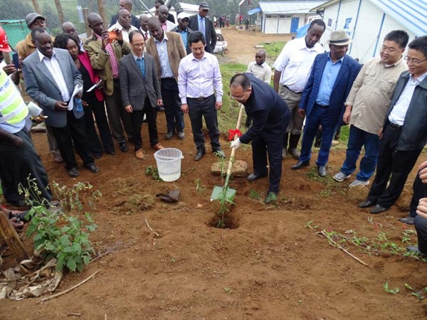 儀式啟動(dòng)之前,由KTDA茶葉公司董事會(huì)主席親自在現(xiàn)場(chǎng)操作挖機(jī),正式啟動(dòng)儀式。隨后,與會(huì)貴賓還在項(xiàng)目現(xiàn)場(chǎng)種植了象征希望和發(fā)展的樹(shù)苗。