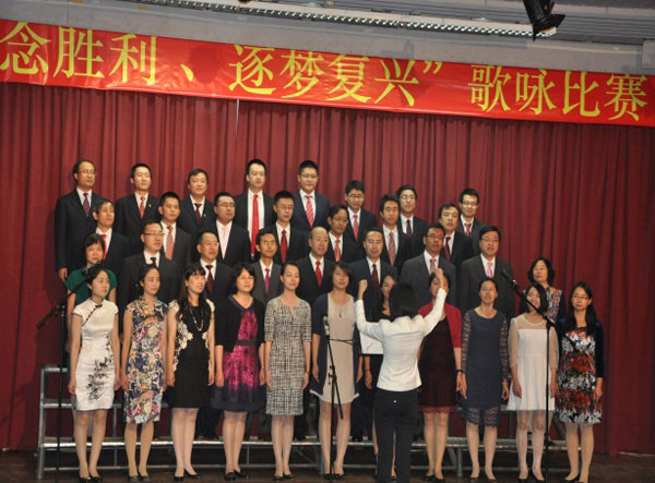 中國駐肯尼亞大使劉顯法在合唱比賽前發(fā)表講話,祝賀中國人民抗日戰(zhàn)爭(zhēng)暨反法西斯戰(zhàn)爭(zhēng)勝利70周年,并向全體中資員工致以節(jié)日的問候,及對(duì)各中資公司參賽人員表示誠摯的祝愿。隨后,合唱比賽在紅色經(jīng)典歌曲——《游擊隊(duì)之歌》中拉開了序幕。