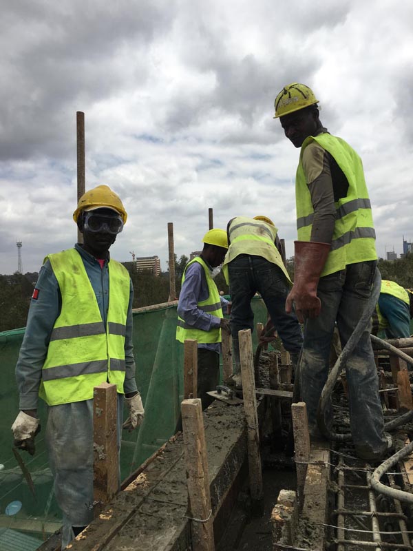在進度上,全體項目部人員團結(jié)一致,良好協(xié)作,嚴格按照月進度計劃執(zhí)行。各崗位人員制定周施工計劃和日工作安排,把工作盡量往前排,各工序采取“流水線”作業(yè)模式,同時做好各崗位的良好協(xié)調(diào)和對接,使工作更加科學(xué)、規(guī)范和有序。在日常的工作中,各崗位人員積極交流,做到各項工作不沖突、不拖累。在搶進度、拼速度的“戰(zhàn)役”中,項目部各崗位人員主動加班加點,管理人員以身作則,帶著肯尼亞當?shù)貑T工趕工期、搶進度,全體項目部人員斗志高昂,激情飽滿。