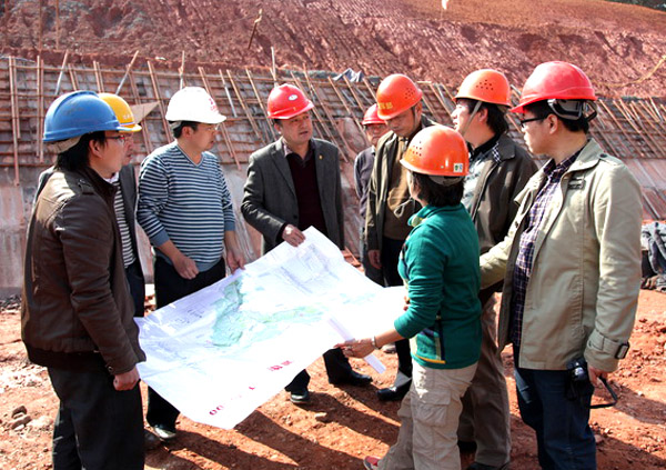 2013年11月20日下午,省水利廳副廳長文林一行到我公司承建的柘塘防護(hù)工程檢查并指導(dǎo)工作。