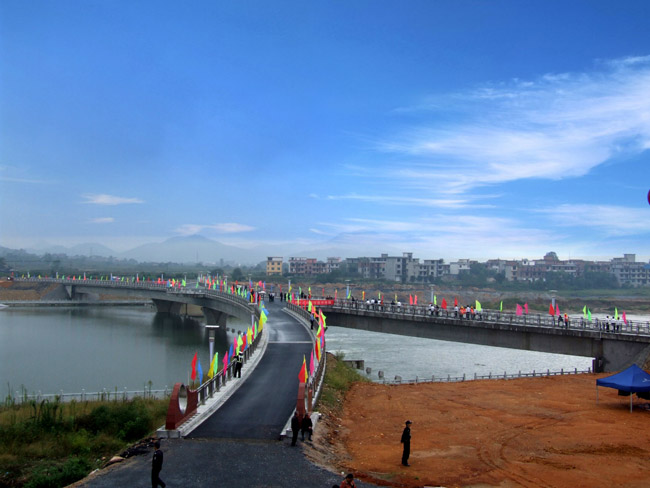 九月金秋,流光溢彩。2010年9月30日,在祖國(guó)華誕即將到來(lái)之際,我公司承建的宜春市秀江三級(jí)抬水壩及景觀橋(又稱為蝴蝶橋)工程舉行了竣工通車典禮。