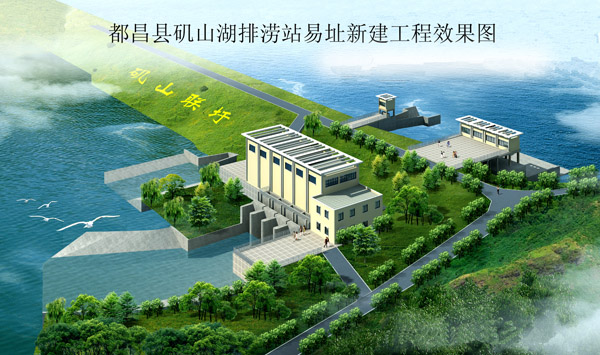 為配合江西省都昌縣打造“城依水建、水在城中、山水相依”的宜居園林城市建設(shè)重點(diǎn)項(xiàng)目——濱水西區(qū)開發(fā)的需要,都昌縣磯山湖排澇站從磯山湖上壩易址磯山湖下壩,新建工程由電排站和自排閘組成,泵站裝機(jī)容量4×800kw,治澇標(biāo)準(zhǔn)采用10年一遇暴雨,治澇面積44平方公里,是原磯山湖上壩排澇站排澇能力的2倍,屬中型排澇站。