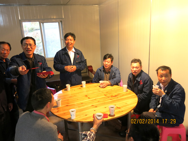 2月2日,正月大年初三,公司董事長兼總經(jīng)理王元旦一行來到遂川縣大坑鄉(xiāng)高倚四級電站建設(shè)工地,現(xiàn)場察看了電站大壩工程施工建設(shè)情況,并親切看望并慰問春節(jié)期間仍堅守崗位、奮戰(zhàn)在施工第一線的員工,代表總公司向他們及其家屬致以親切的慰問和節(jié)日的祝福。