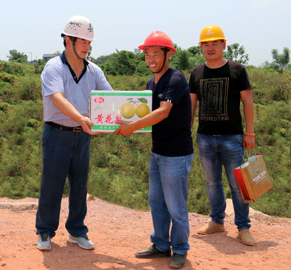 頂著炎炎烈日,王元旦董事長一行先后來到盧前隧洞、北樓隧洞、曾家渡槽、渡王家渡槽、會源隧洞等施工現(xiàn)場進(jìn)行檢查,親切看望慰問現(xiàn)場員工,并送上了防暑降溫慰問品。每到一處,他總是親切詢問員工的工作與生活情況,并叮囑項目部要合理安排工作時間,保障防暑降溫物品的供給,為員工提供安全、清涼的工作與生活環(huán)境。