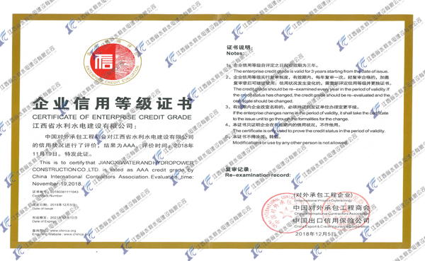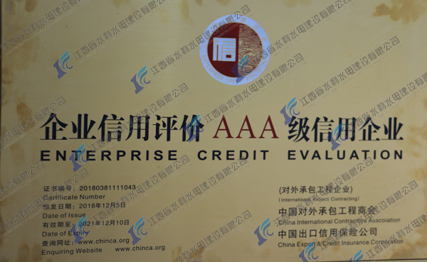此次公司再度榮獲“2018年度AAA級信用企業(yè)”稱號,源于數(shù)百名江西水建海外人的共同努力,他對于公司進一步提升品牌影響力,拓展國際市場具有十分重要的意義。