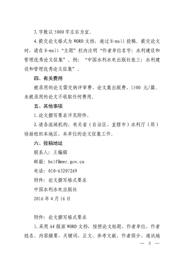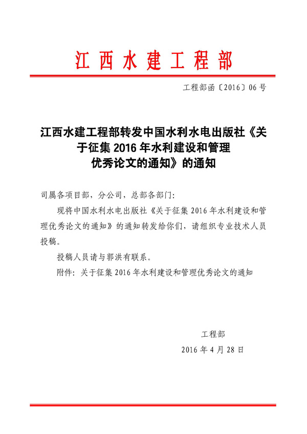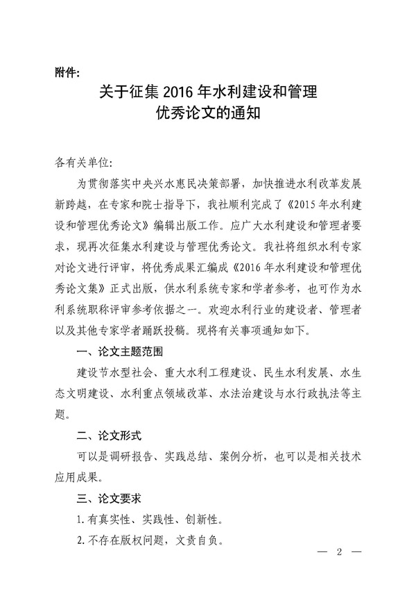 轉(zhuǎn)發(fā)征集2016年水利建設(shè)和管理優(yōu)秀論文的通知