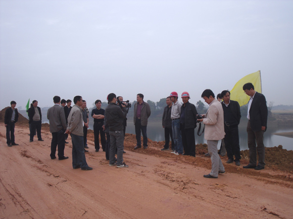 文林副廳長仔細(xì)察看了項目施工現(xiàn)場情況,并耐心聽取了我司項目經(jīng)理雷才文的工程情況匯報。梓埠1標(biāo)自去年11月份開工以來,目前已完成了馬鞍山電排站、周灣排灌站、堤腳拋石固腳、堤身深層攪拌防滲墻等項目,堤身土方填筑及混凝土預(yù)制塊制作正在緊張進行。文副廳長聽完匯報后,對梓埠1標(biāo)的施工工作提出了幾點要求,一是業(yè)主單位要盡快解決好征地問題,為工程的順利實施創(chuàng)造良好條件;二是施工單位要抓住晴好天氣,加快堤身土方填筑及預(yù)制塊制作進度,并加強質(zhì)量控制。